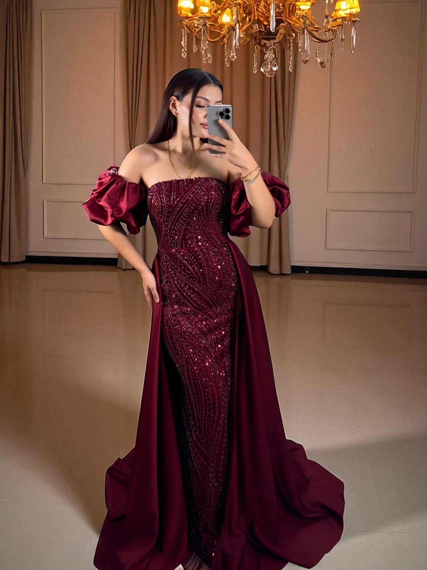 Bu özel tasarım abiye elbise,boncuk işlemesi ve pelerin detayıyla dikkat çekiyor. Full payet ve boncuk işlemeli balık kesim abiyeye bir de pelerin eklenince işte şahane tasarıyla diva elbisemiz .Saten kolları çıkarılıp takılabilir özelliği ile farklı bir şıklık sunuyor. Özel günlerinizde veya davetlerde şıklığınızı tamamlayacak bir seçenek.| Renk | : | Bordo |