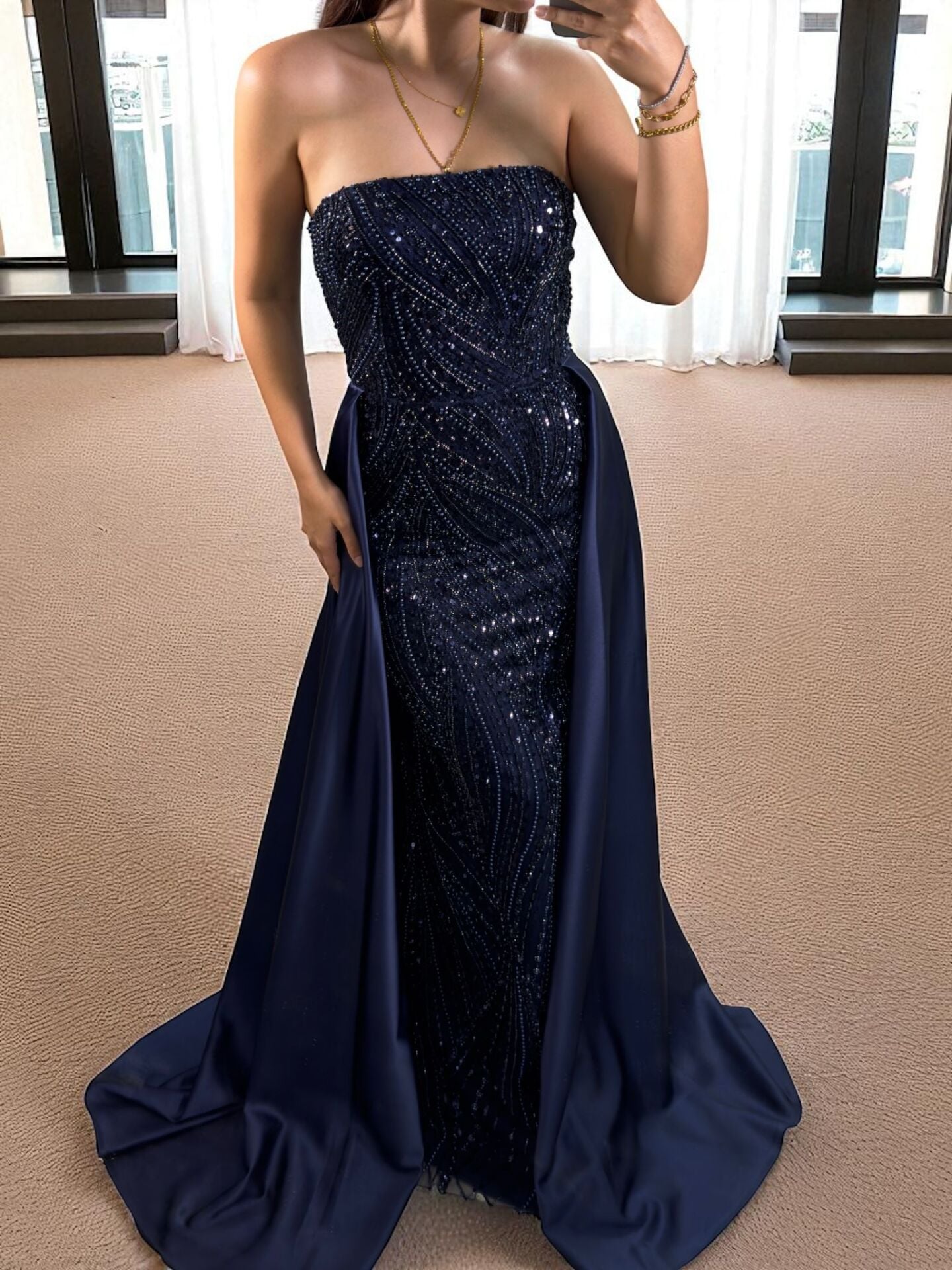 Diva Tasarım Payet Ve Boncuk İşlemeli Pelerinli Lacivert Abiye Elbise 38