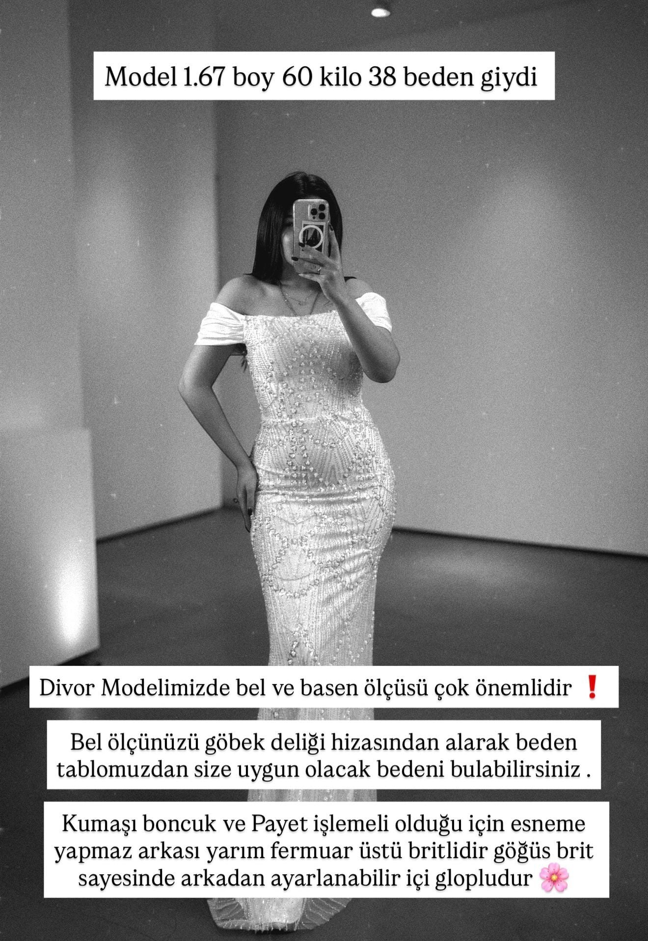 Zarif ve gösterişli bir seçenektir. İncelikle işlenmiş boncuk ve payet detaylarıyla dikkat çeker. Saten kumaşıyla rahatlık ve şıklığı bir arada sunar. Özel davetlerde veya düğünlerde mükemmel bir seçimdir. Bu elbiseyle girdiğiniz her ortamda göz alıcı bir görünüm elde edersiniz.