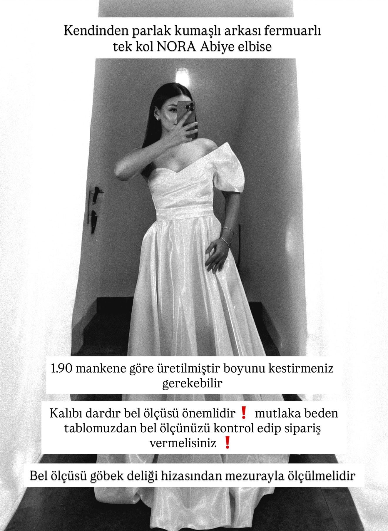 Bu parlak tok saten kumaşlı abiye elbise, şıklığı ve zarafeti bir araya getiriyor. Beli kemerli tasarımı sayesinde vücudu güzel bir şekilde vurgularken, parlak kumaşıyla dikkat çekici bir görünüm sunuyor. Davetlerde, düğünlerde ya da özel etkinliklerde rahatlıkla tercih edebileceğiniz bu elbise, size zarif ve göz alıcı bir görünüm kazandıracak.