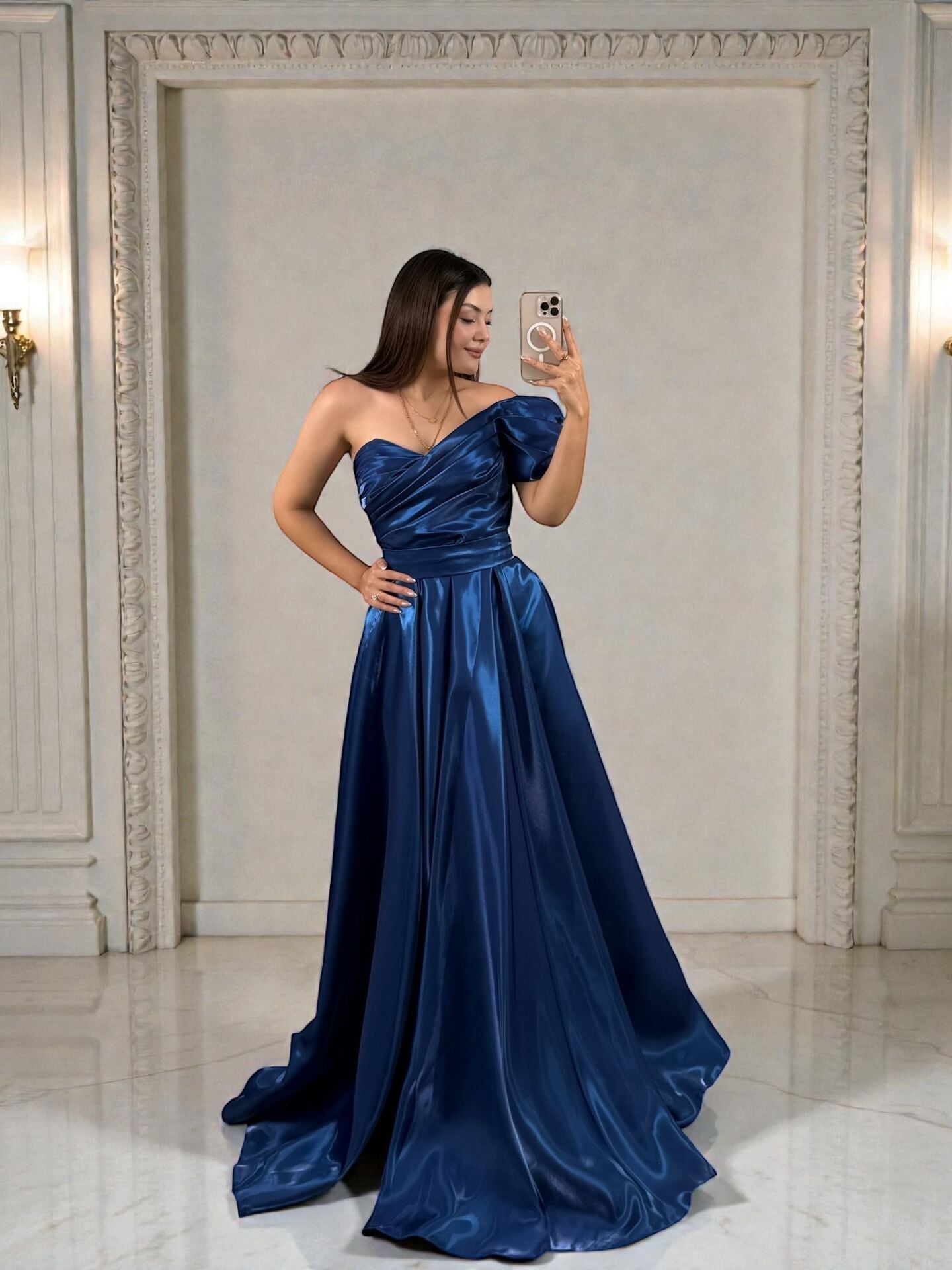 Bu parlak tok saten kumaşlı abiye elbise, şıklığı ve zarafeti bir araya getiriyor. Beli kemerli tasarımı sayesinde vücudu güzel bir şekilde vurgularken, parlak kumaşıyla dikkat çekici bir görünüm sunuyor. Davetlerde, düğünlerde ya da özel etkinliklerde rahatlıkla tercih edebileceğiniz bu elbise, size zarif ve göz alıcı bir görünüm kazandıracak.