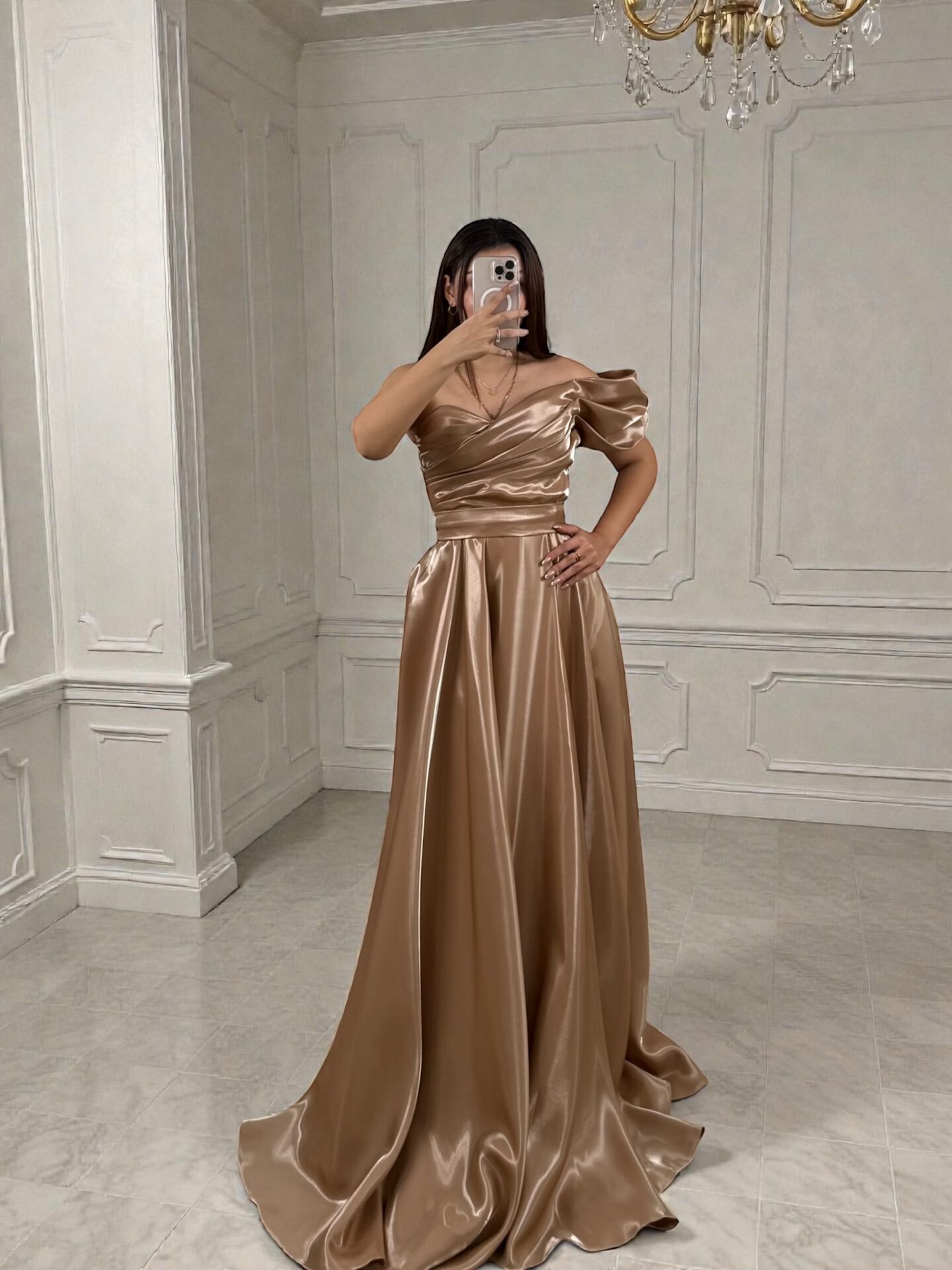 Bu parlak tok saten kumaşlı abiye elbise, şıklığı ve zarafeti bir araya getiriyor. Beli kemerli tasarımı sayesinde vücudu güzel bir şekilde vurgularken, parlak kumaşıyla dikkat çekici bir görünüm sunuyor. Davetlerde, düğünlerde ya da özel etkinliklerde rahatlıkla tercih edebileceğiniz bu elbise, size zarif ve göz alıcı bir görünüm kazandıracak.
