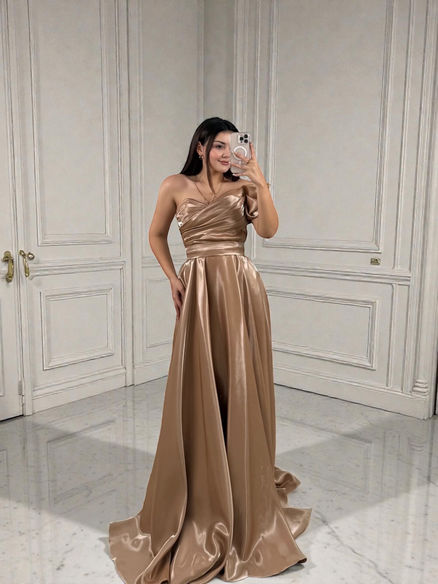 Bu parlak tok saten kumaşlı abiye elbise, şıklığı ve zarafeti bir araya getiriyor. Beli kemerli tasarımı sayesinde vücudu güzel bir şekilde vurgularken, parlak kumaşıyla dikkat çekici bir görünüm sunuyor. Davetlerde, düğünlerde ya da özel etkinliklerde rahatlıkla tercih edebileceğiniz bu elbise, size zarif ve göz alıcı bir görünüm kazandıracak.