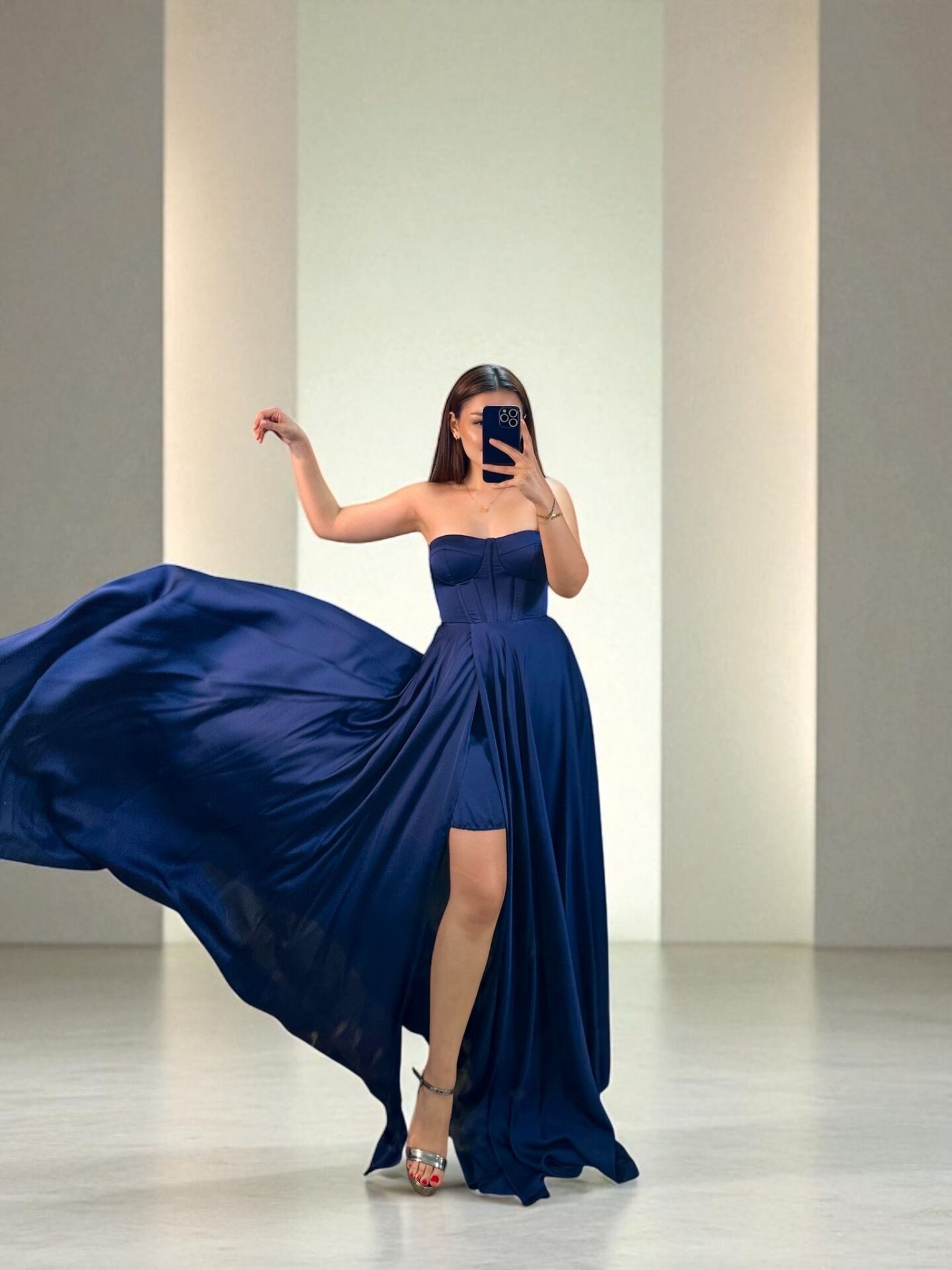 İnce Saten Uçuş Uçuş Korse Ve Yırtmaç Detaylı Abiye Elbise, zarif ve şık bir seçenektir. İnce saten korse detayı, beli saran kesimiyle mükemmel bir uyum sağlarken, yırtmaç detayı da cesur bir görünüm sunar.Modelde 36 beden kullanılmıştır.