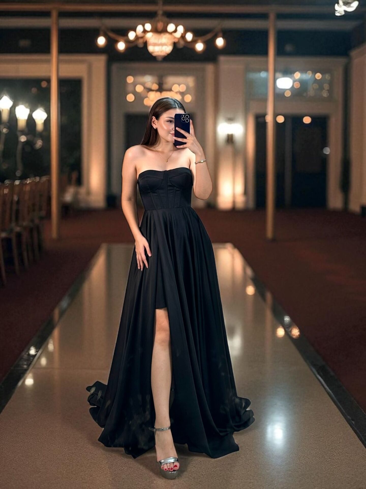 İnce Saten Uçuş Uçuş Korse Ve Yırtmaç Detaylı Abiye Elbise, zarif ve şık bir seçenektir. İnce saten korse detayı, beli saran kesimiyle mükemmel bir uyum sağlarken, yırtmaç detayı da cesur bir görünüm sunar.Modelde 36 beden kullanılmıştır.