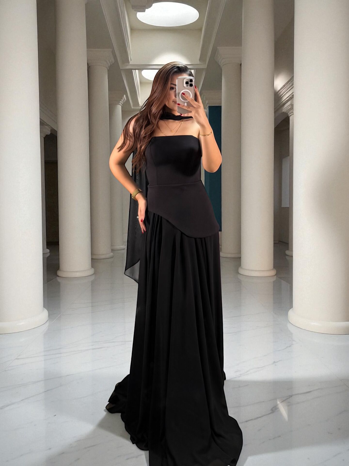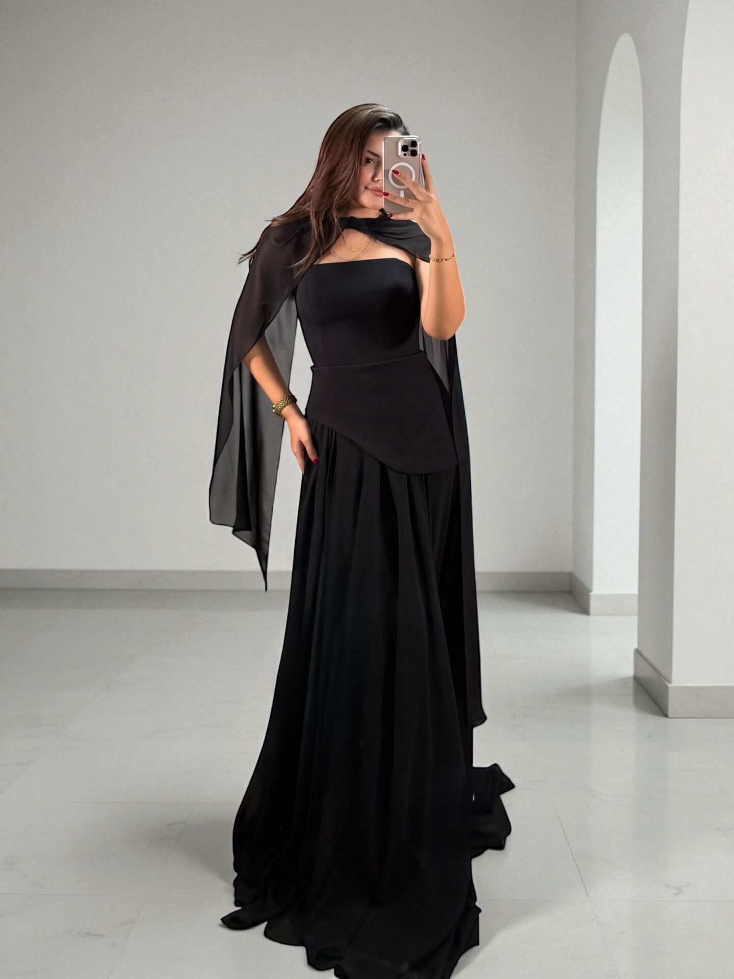 Oriva Korseli Şifon Fular Detaylı Siyah Abiye Elbise 40