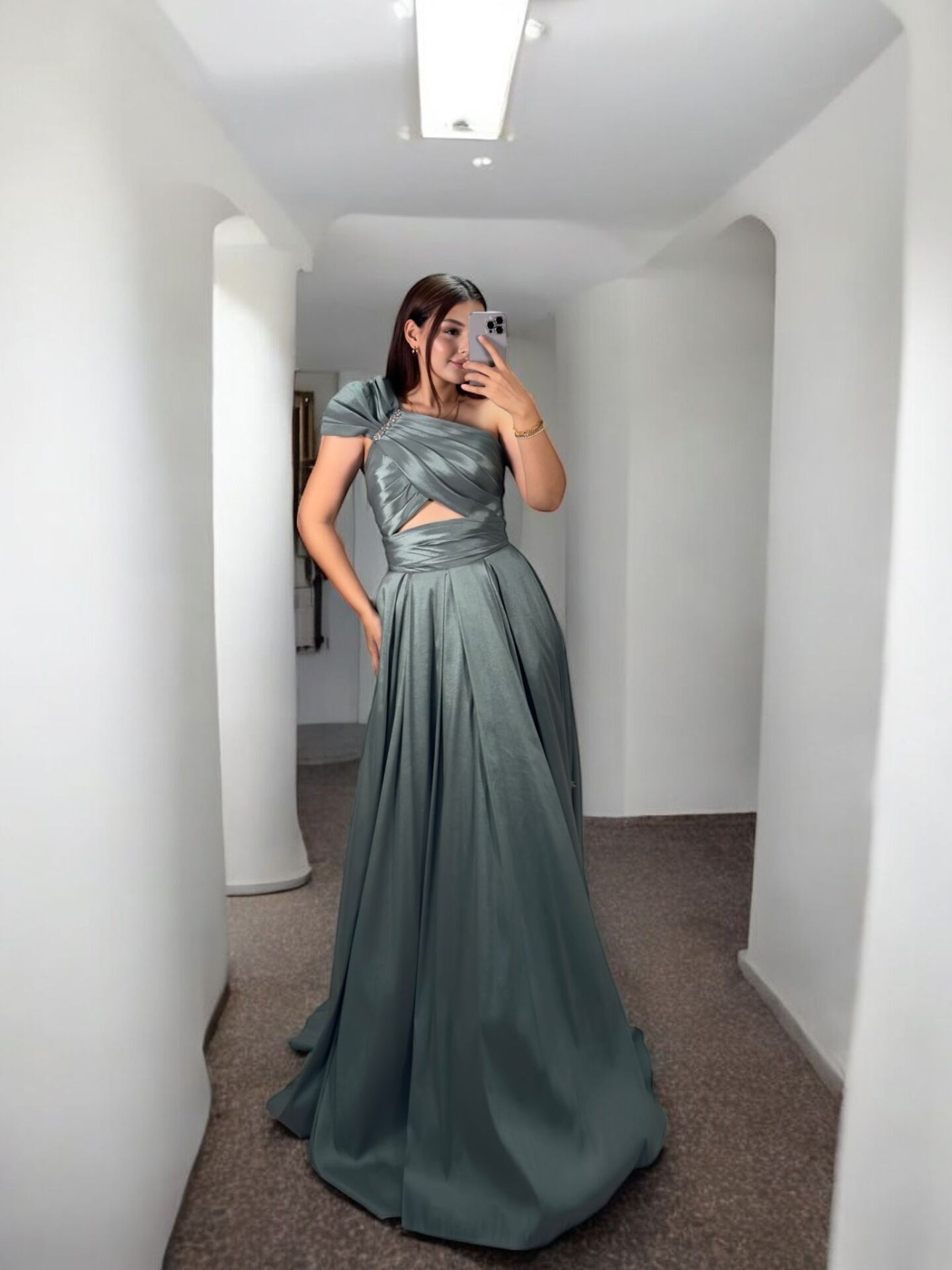 Royal Tek Omuz Tafta Saten Abiye Elbise, zarif tasarımı ve tafta saten kumaşı ile dikkat çekiyor. Omuz detayı ve saten kumaşıyla özel bir davette şıklığınızı tamamlayacak bir seçenek. Bu abiye elbise ile herkesin gözleri üzerinizde olacak!