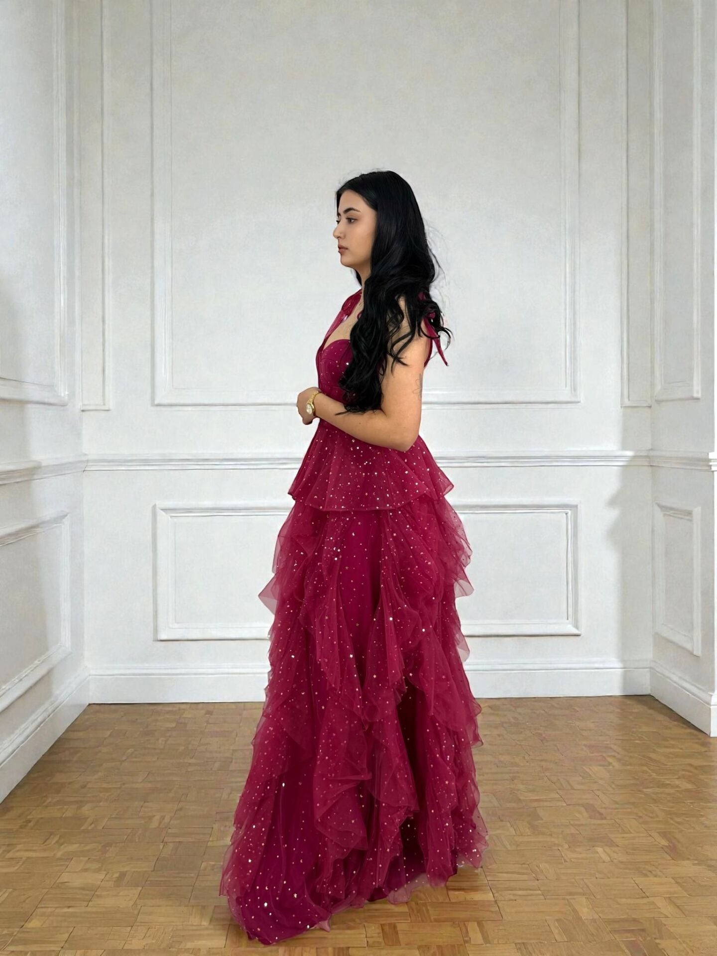 Siana Korseli Katlı Model Pembe Renk Abiye Elbise 36
