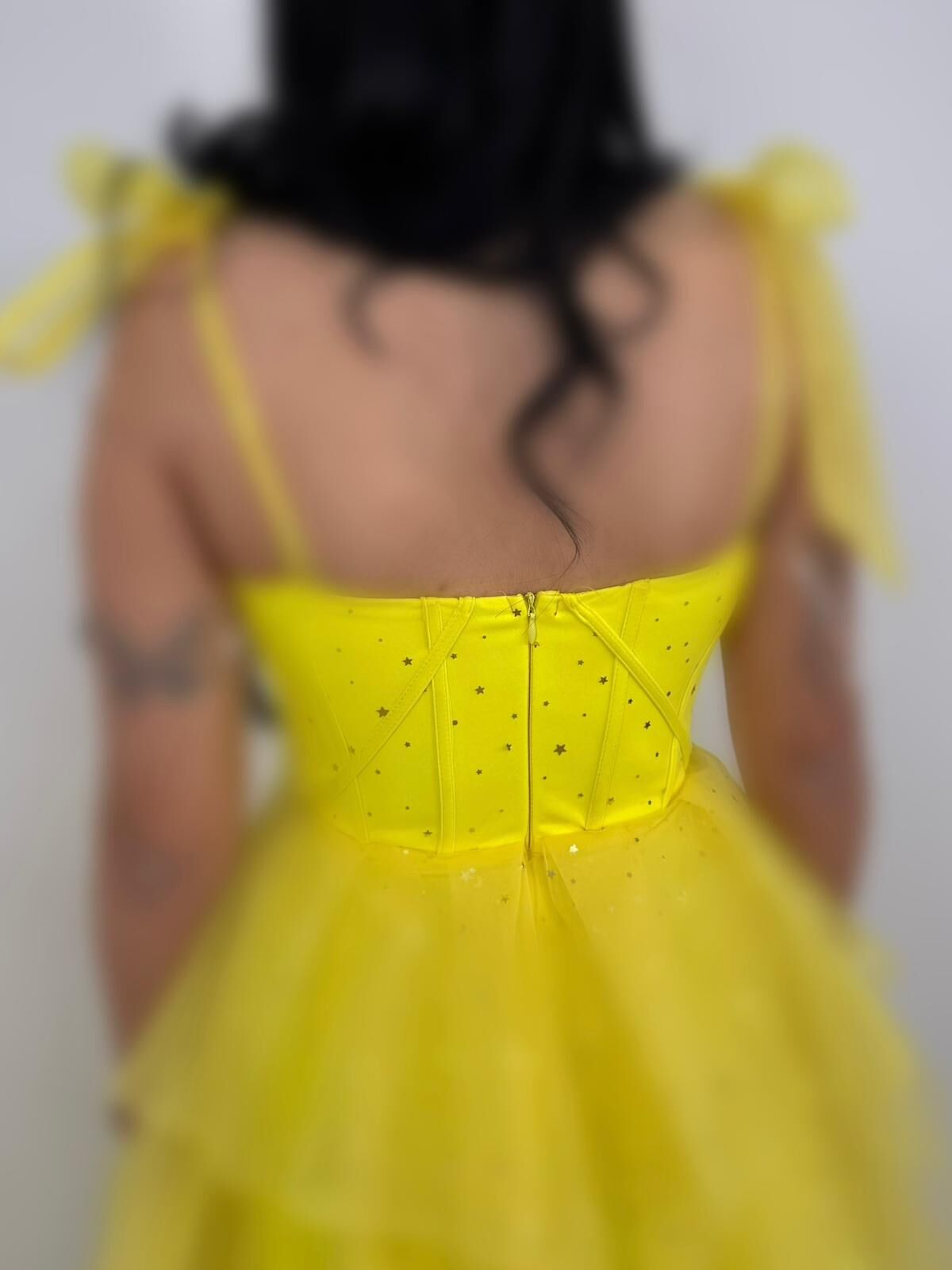 Siana Korseli Katlı Model Sarı Renk Abiye Elbise