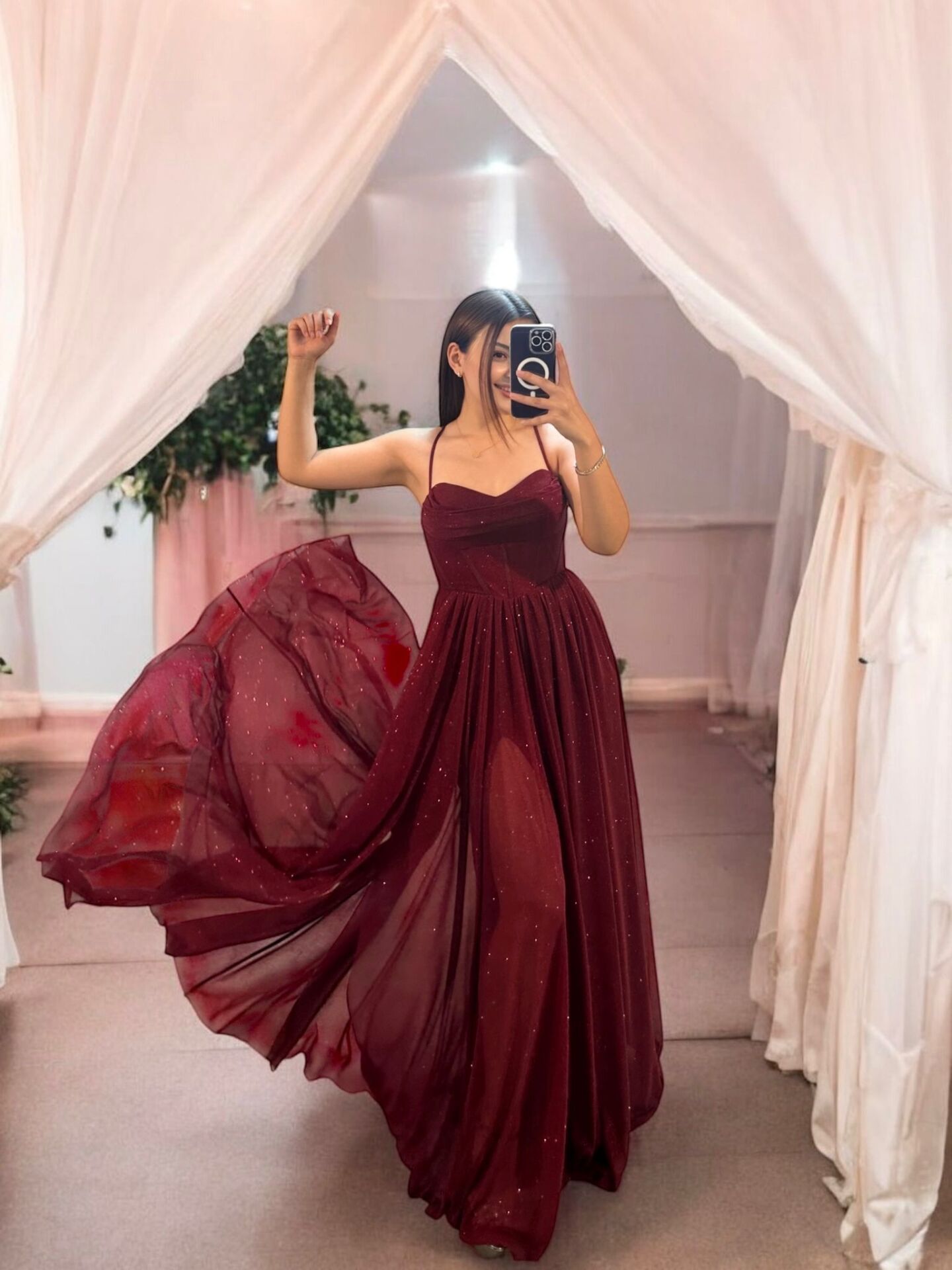 Kendinden simli uçuş uçuş tül kumaştan abiye elbisemiz . Belden korseli yırtmaçlı modeldir. Arka biriti ( ipleri ) göğüs ve bel ölçünüze göre rahatlıkla ayarlanabilir. Yırtmacı istediğiniz gibi kapattırıp açtırabilirsiniz .