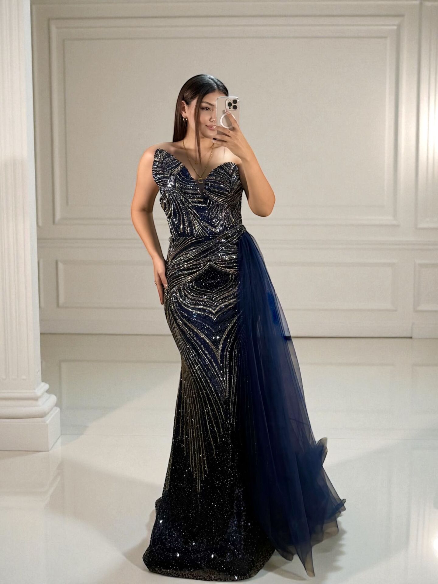 Sortie Tasarım Boncuk Ve Payet İşlemeli Lacivert Balık Elbise 38