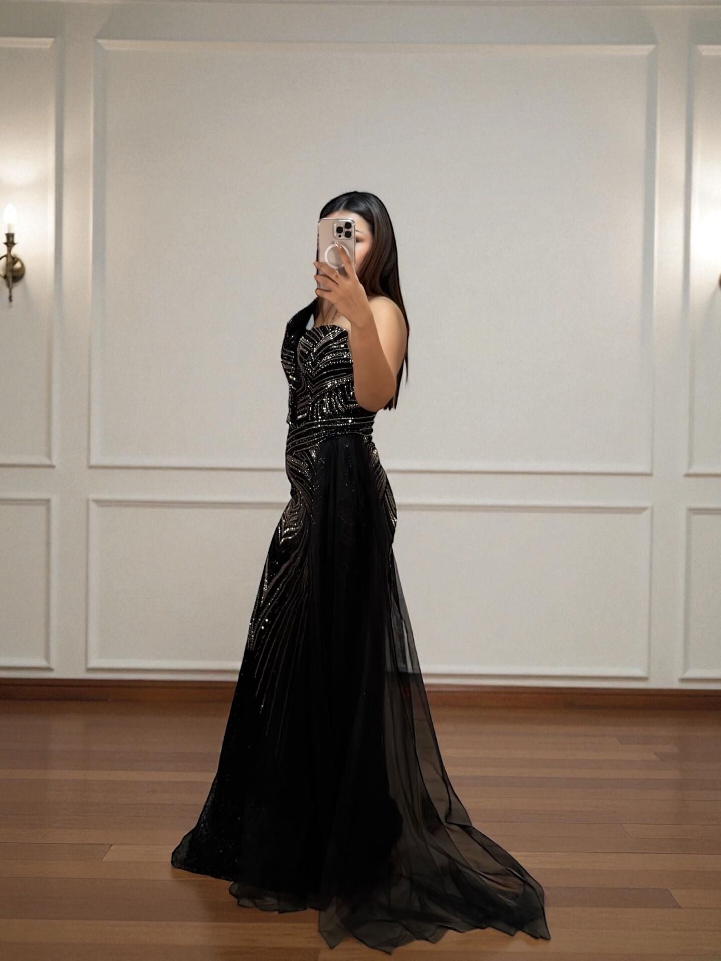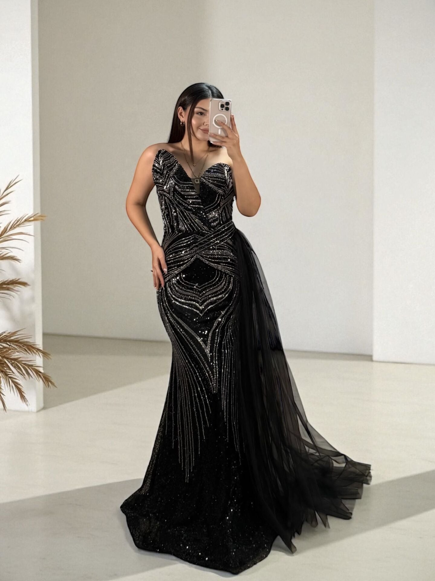 Sortie Tasarım Boncuk Ve Payet İşlemeli Siyah Balık Elbise
