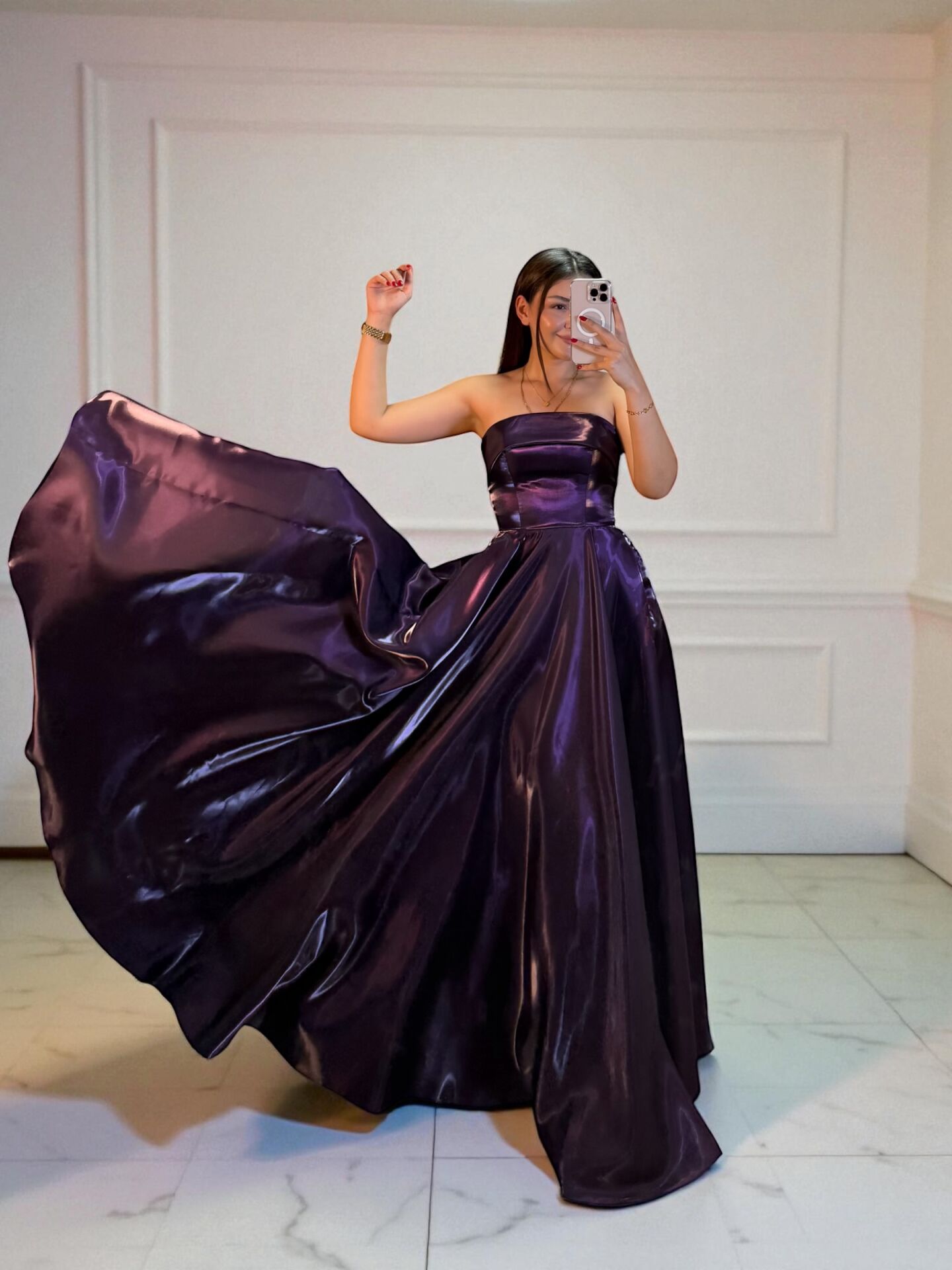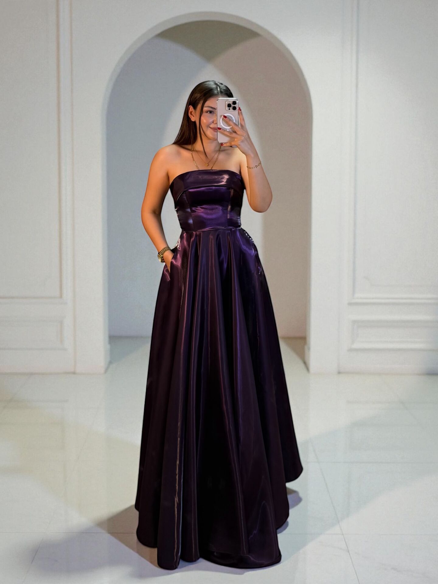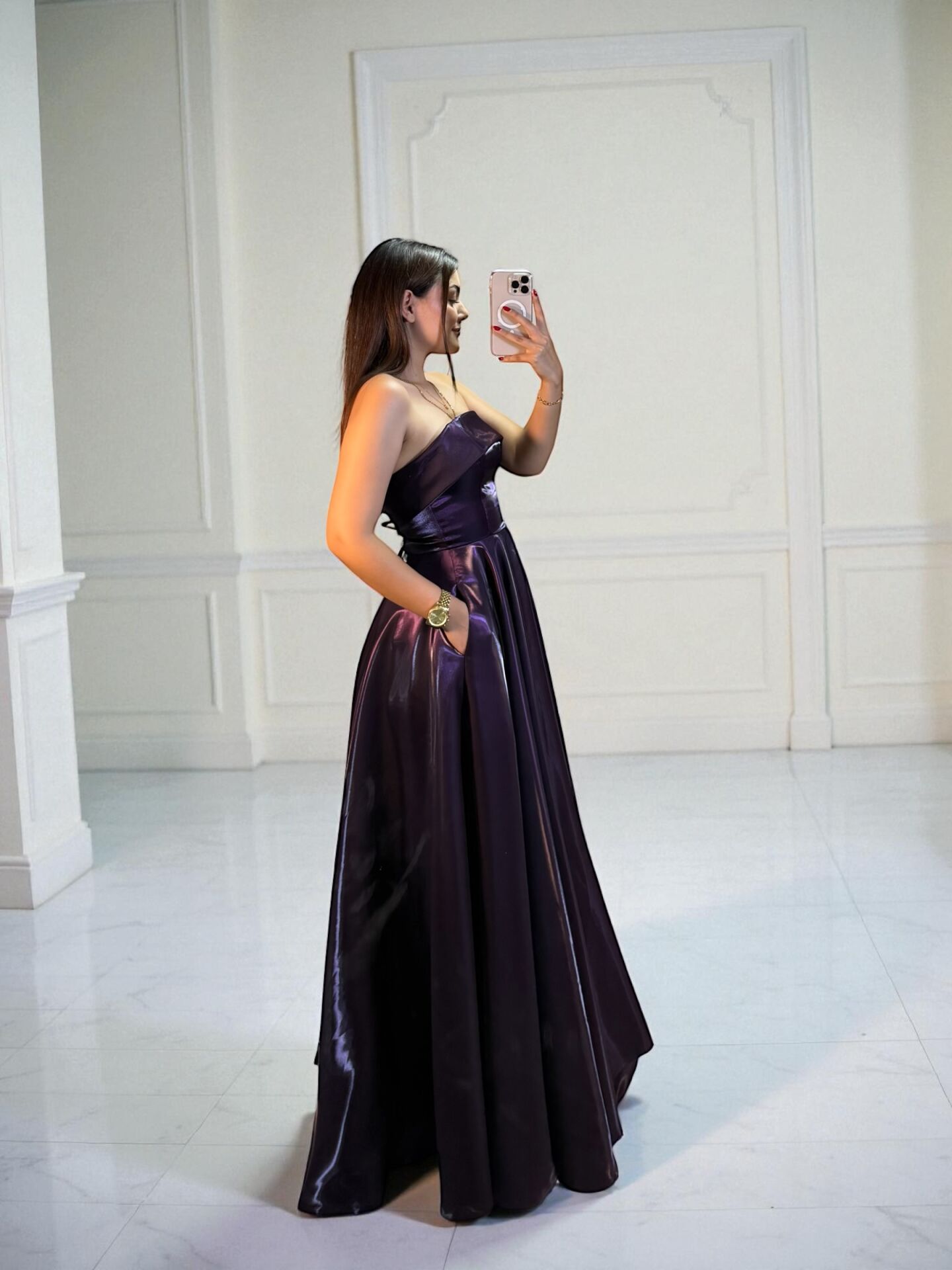 Stella Hologram Saten Straplez Mor Renk Abiye Elbise 36