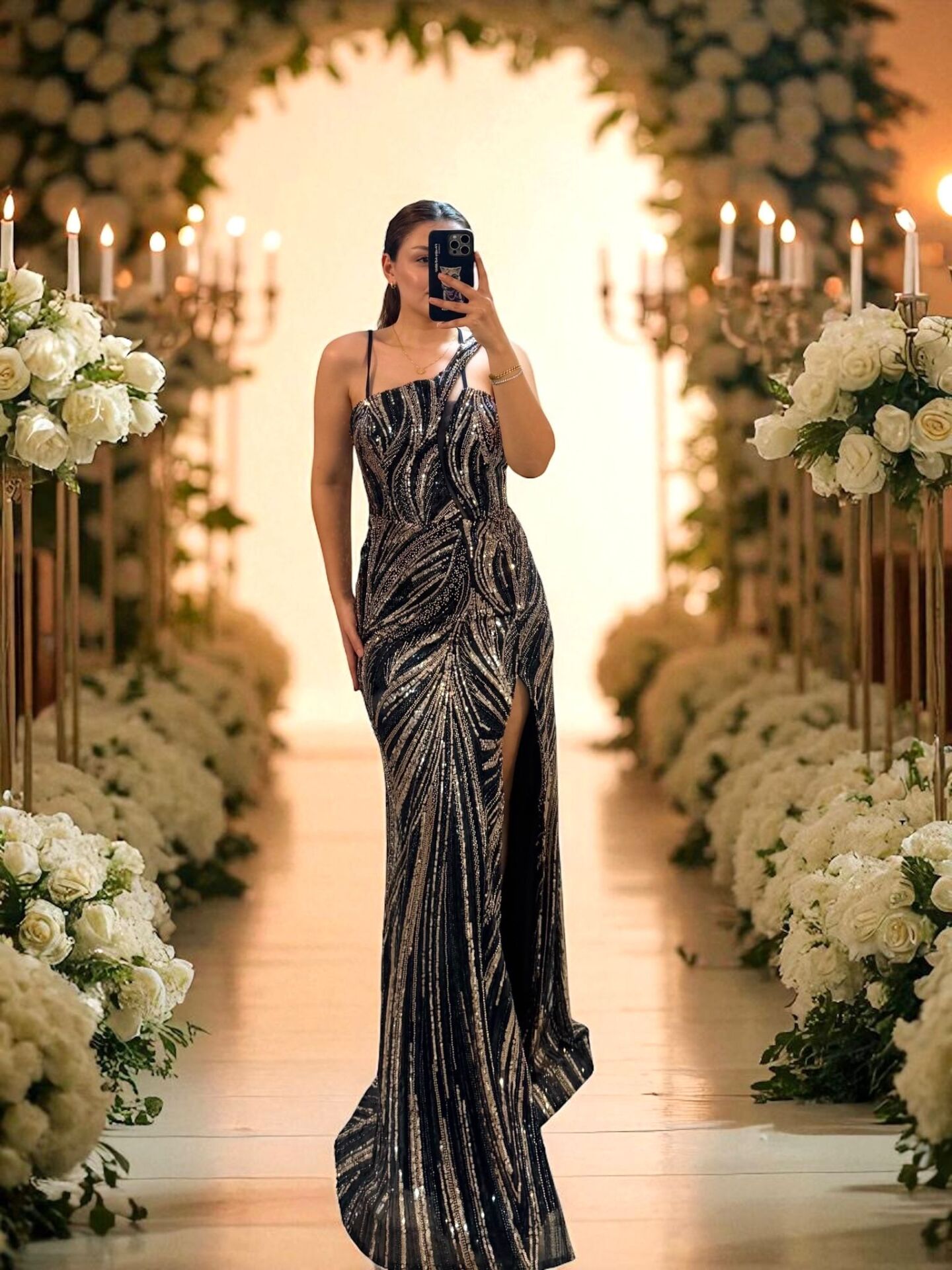 balık modeli ile vücudu saran bir kesime sahiptir. Yaka detayındaki tek omuzlu tasarım ve yırtmaç detayı, zarif bir görünüm sağlarken payet ve boncuklarla süslenmiş, dikkat çekici bir tasarıma sahiptir. Bu abiye, özel davetlerde ve özel günlerde şıklığınızı tamamlayacak harika bir seçenektir. Modelde 38 beden kullanılmıştır.