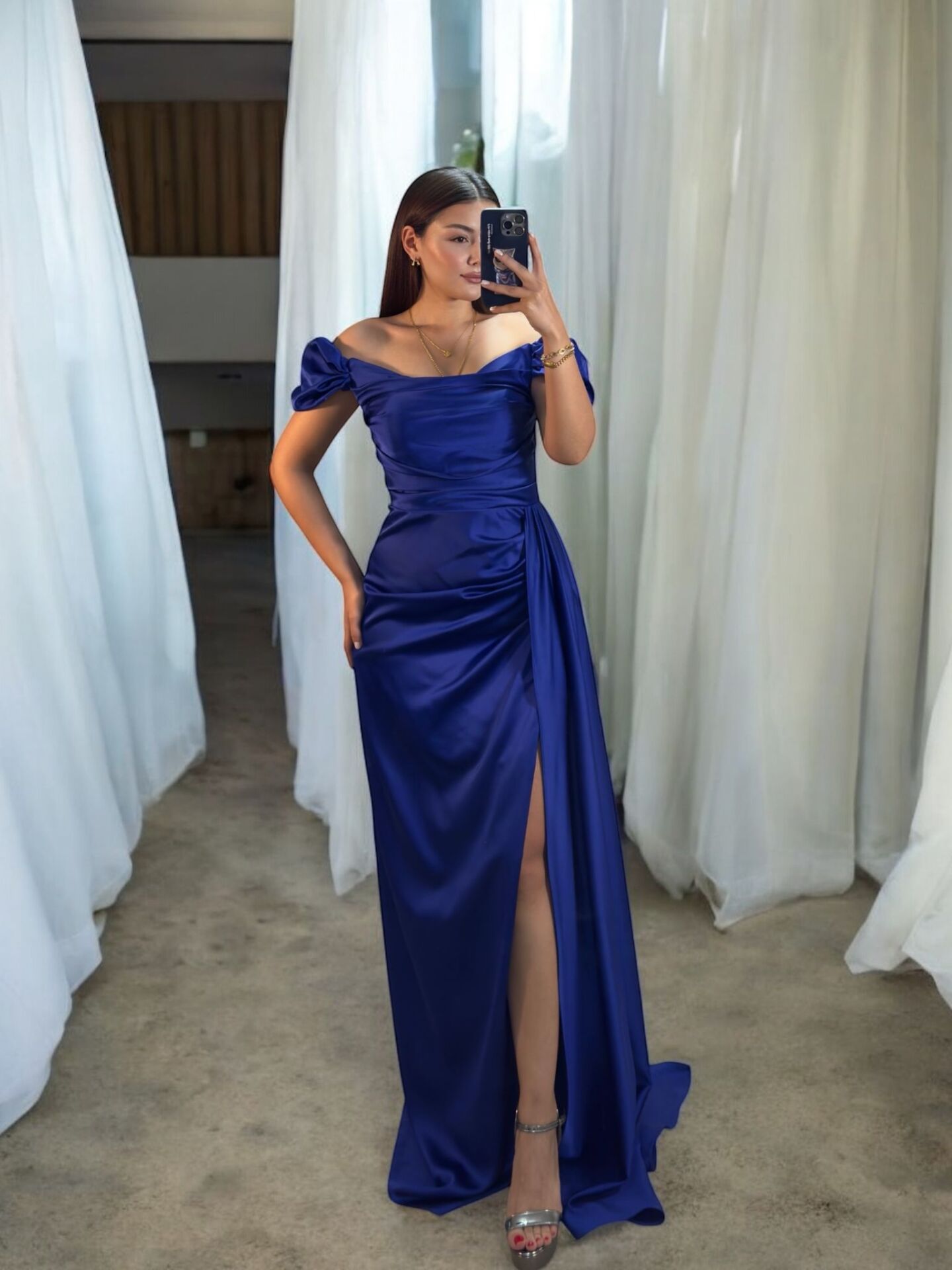 Venis Balon Düşük Kollu Gizli Yırtmaçlı Saten Lacivert Abiye Elbise! Bu muhteşem abiye elbise, zarif balon kolları, gizli yırtmaç detayı ve saten kumaşıyla göz kamaştırıyor. Özel davetlerde, düğünlerde ya da mezuniyet törenlerinde şıklığınızı konuşturmak için ideal bir seçim. Her türlü vücut tipine uyum sağlayan bu elbise, zarif ve şık bir görünüm sunuyor.
